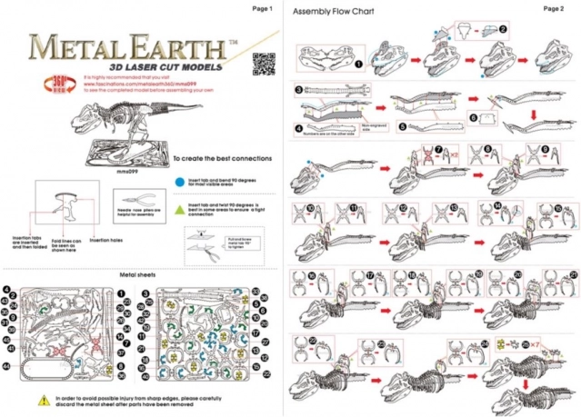 Komplet pakke: Indeholder to stålark med dele og en samlevejledning. Der kræves ingen værktøj for at samle modellen helt.