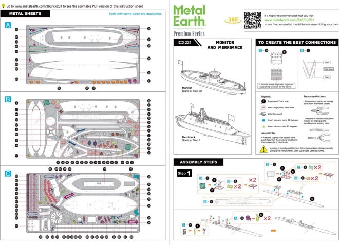 Metal 3D-puslespil METAL EARTH Monitor & Merrimack (ICONX)