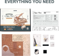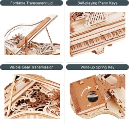 Modellen styrker finmotorik, logisk tænkning og tålmodighed. Når den er samlet, belønner den ikke blot med en smuk dekoration, men også med muligheden for at nyde musikledsagelse i tandhjulenes rytme. En fantastisk gave til særlige lejligheder!