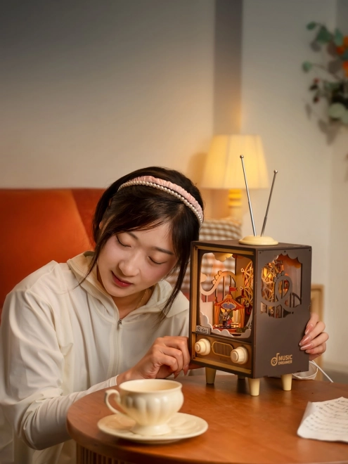 Et miniature-tv med en karnevalsscene bringer nostalgi og æstetik fra svundne tider ind i dit rum.
