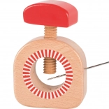 Værktøj til at lave huller i kastanjer GOKI er en ideel hjælper for alle kreative individer. Takket være den solide udførelse af massivt bøgetræ kan du nemt og sikkert lave huller i kastanjer og skabe smukke dekorationer eller legetøj.