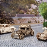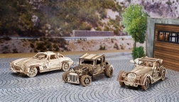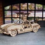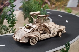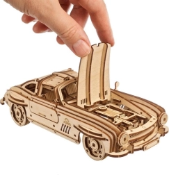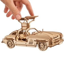 Træd ind i en verden af ikoniske køretøjer med Ugears træmodel af Winged Sports Coupe. Denne model efterligner det elegante design af en klassisk sportsvogn med vingedøre, som giver en unik betjening. Bilen tilbyder to funktionsmodi: optræk ved hjælp af en skraldenøgle eller bagud optræk på en jævn overflade. Under motorhjelmen gemmer sig en detaljeret model af motoren, der er tilgængelig ved at hæve den.