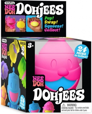 NEEDOH DOHJEES Serie 2 bringer små, farverige skabninger, som bliver din nye makker til afslapning. Takket være det ugiftige, behageligt smidige materiale er legetøjet skønt at klemme og vender altid tilbage til sin oprindelige form. Ideelt til rejser, skole og kontor.