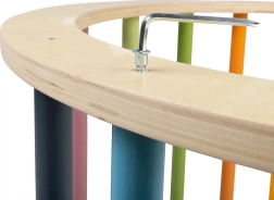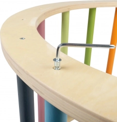 Takket være den solide konstruktion af FSC®-certificeret træ tilbyder buen et trygt fundament for udvikling af grovmotorik, balance og grundlæggende styrke. De kompakte mål sparer plads og gør buen til et praktisk supplement til legehjørnet samt til enkel bevægelsestræning derhjemme. Beregnet til indendørs brug, med montering udført af en voksen.