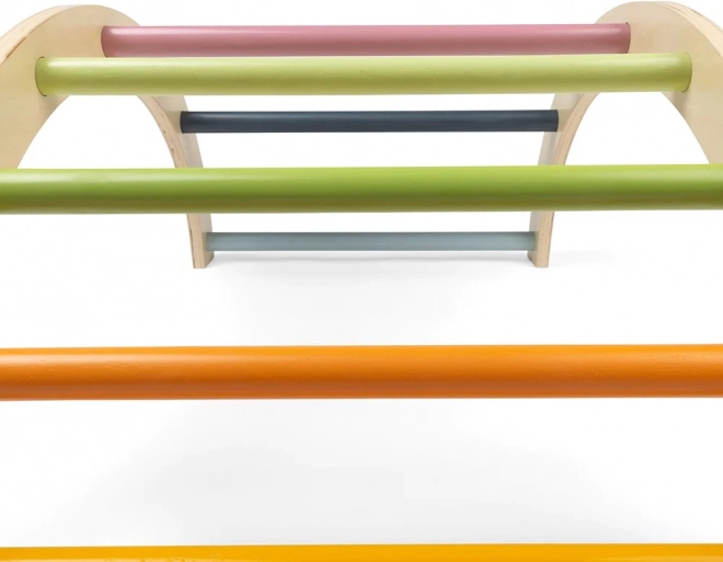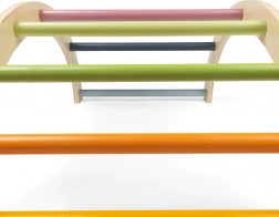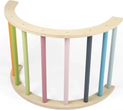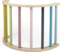 Montessori-buen fra BIGJIGS TOYS er et alsidigt legeelement, der motiverer børn til naturlig bevægelse og udforskning. Den kan bruges som klatrebue, balanceredskab, base for en hyggelig hule med tæppe eller som ophængsstativ til rangler og bamser. De pastelfarvede ribber inviterer til aktivitet og fuldender samtidig indretningen i børneværelset.
