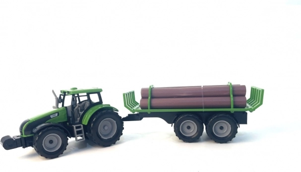 Traktoren med anhænger til træstammer er det perfekte legetøj til børn, der elsker landbrugsteknik og byggeaktiviteter. Denne model udmærker sig ved sit realistiske design og fås i tre forskellige farver. Anhængeren fuld af træstammer øger legen med autenticitet og øger mulighederne for kreative scenarier.
