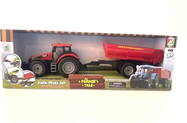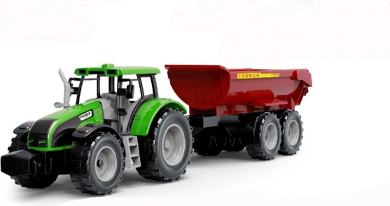 Den fantastiske traktor med anhænger fuld af hø giver børn timer med kreativ sjov. Takket være svinghjulsdrevsmekanismen er det bare at skubbe traktoren, så kører den selv. Fås i tre forskellige farvemuligheder, så alle kan vælge efter deres smag.