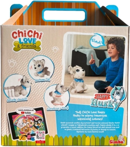 Huskyen adlyder kommandoer og reagerer på sin ejers stemme som en rigtig hund. Den kan sidde, ligge, stå på poterne, stå på hovedet og endda synge. I alt reagerer den på 12 forskellige stemmekommandoer. Pakket i en miljøvenlig, æstetisk kartonkasse. Emballagen med håndtag kan bruges som et transportabelt hus til kæledyret. Hundens højde: 30 cm.