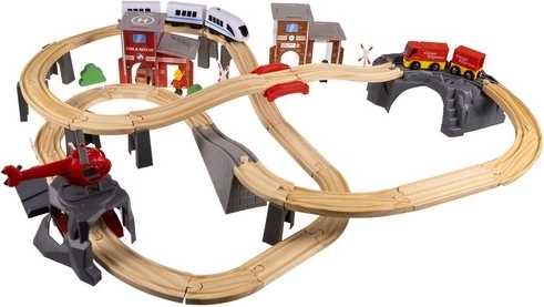 Kruzzel 22754 Træ-togbane med batteri, 70 dele, 480 cm