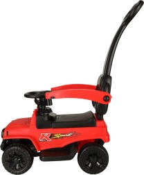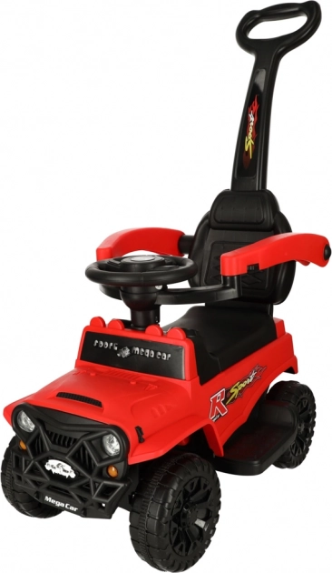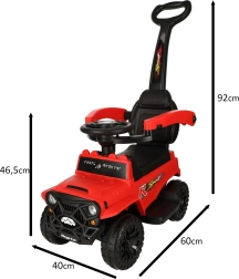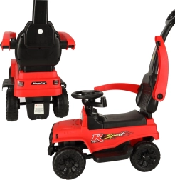 Bilen kan også bruges som løbecykel, så når den unge chauffør løber tør for energi, kan man let skubbe bilen!