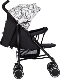 Den har dobbelt hjul for bedre stabilitet, bagerste bremser for sikker stopning og 5-punkts sikkerhedsseler med polstring for maksimal komfort for barnet. Justerbart ryglæn med net og fodstøtte tilpasser vognen til dit barns behov.