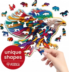 Opdag magien ved at lægge træpuslespillet Skarp Ørn fra WOODEN CITY. Dette produkt imponerer med sine specielt formede brikker, der skaber en uforglemmelig mosaik af dyreformer. Lasermarkerede detaljer og fritstående figurer bringer nye udfordringer og glæde ved puslespillet.