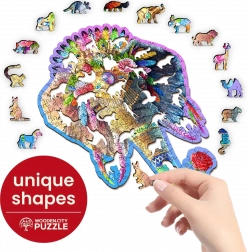 Vi præsenterer unikt træpuslespil Elegant elefant fra mærket WOODEN CITY. Med særligt formede brikker, der inkluderer dyremotiver, bliver samling en større udfordring end hos almindelige puslespil.