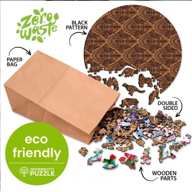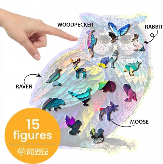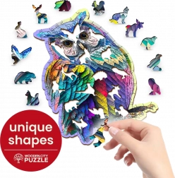 At samle WOODEN CITY-puslespillet med et moderne uglemotiv bestående af 150 brikker er ikke kun underholdende, men også en æstetisk oplevelse. Takket være de laserudskårne brikker kan du glæde dig over præcist forarbejdede former uden splinter. Nogle brikker har unikke former, der minder om dyr, og kan bruges som selvstændige små figurer.