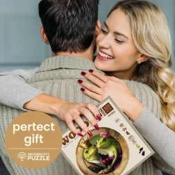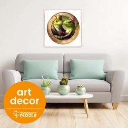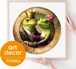 Træpuslespil Kærlighed og frøer fra WOODEN CITY er et unikt byggesæt med laserudskårne brikker. Dette sæt tilbyder en yderst underholdende oplevelse med brikker formet som dyr, som kan stå som små figurer.
