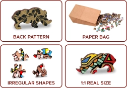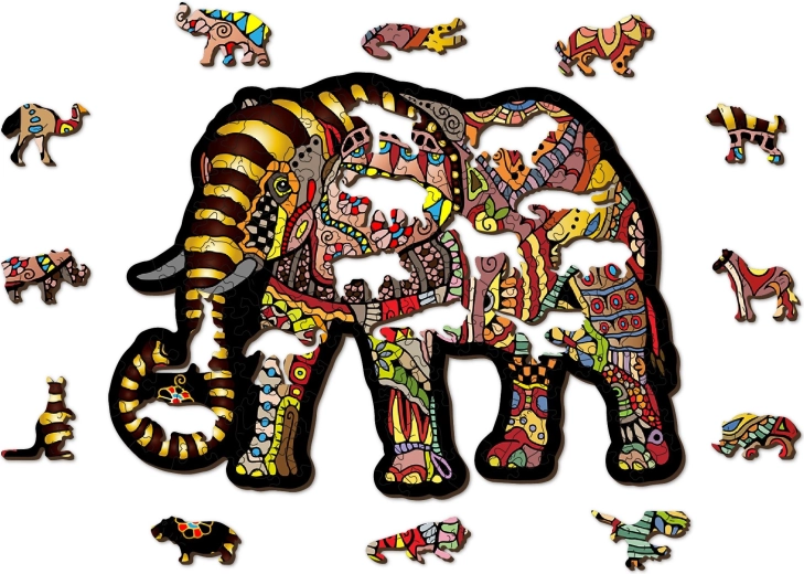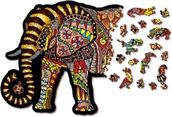 Puslespillet Magisk Elefant fra WOODEN CITY er et glimrende valg for alle elskere af udfordringer og originalitet. Dette puslespil tilbyder mere end bare simpel samling. Med sine unikt formede brikker i dyreformer og komplekse design giver det en ekstraordinær oplevelse: