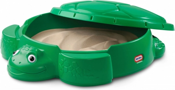 Go Green Turtle sandkasse med låg er designet af den anerkendte legetøjsproducent Little Tikes. Sandkassen er i et økologisk design og er fremstillet af genanvendte materialer. Uanset om det gælder at bygge sandslotte, lave sandkager eller flytte sand fra ét sted til et andet, vil småbørn aldrig kede sig i sandkassen. Skildpadde-sandkassen er det perfekte supplement til haven i baggården.