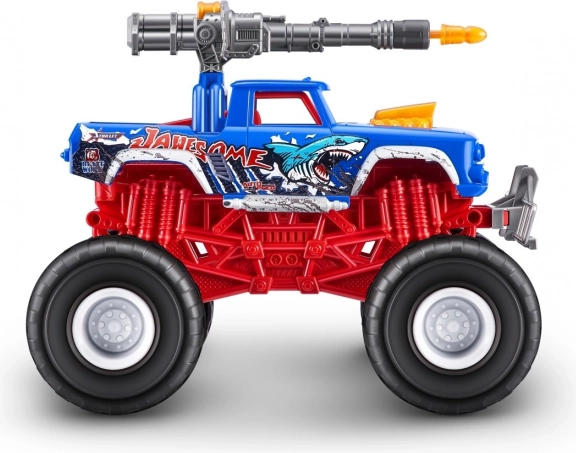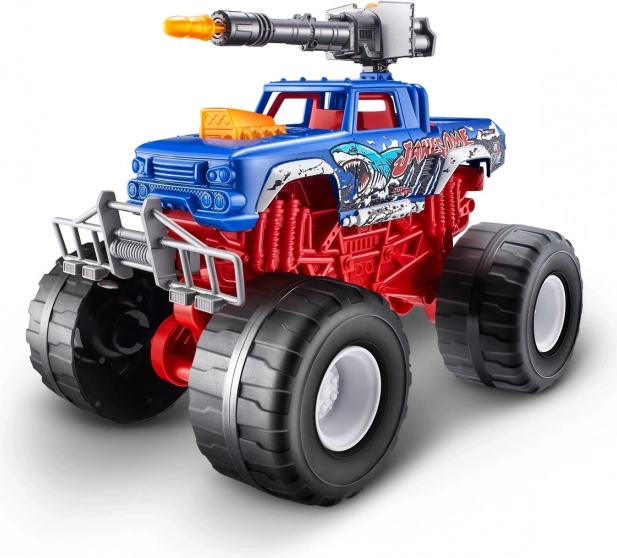 Dyk ned i monster truck-verdenen med denne Monster truck fra serien Metal Machines. Dette imponerende køretøj måler over 20 cm i længden og er designet til at give den bedste køreoplevelse takket være dets realistiske styringssystem og funktionelle chassis. Dine børn vil være fascinerede af den fantastiske kanon placeret på bilens tag, der virkelig kan skyde! Ødelæg alt på din vej med de store hjul og når der skal overvindes fjender på afstand, brug den funktionelle kanon! Kunstige lys og realistiske lydeffekter vil helt sikkert stimulere børns fantasi.
