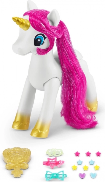 Med de medfølgende tilbehør kan du style enhjørningens hår på mange måder for endeløs sjov.