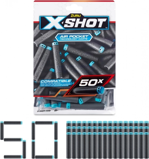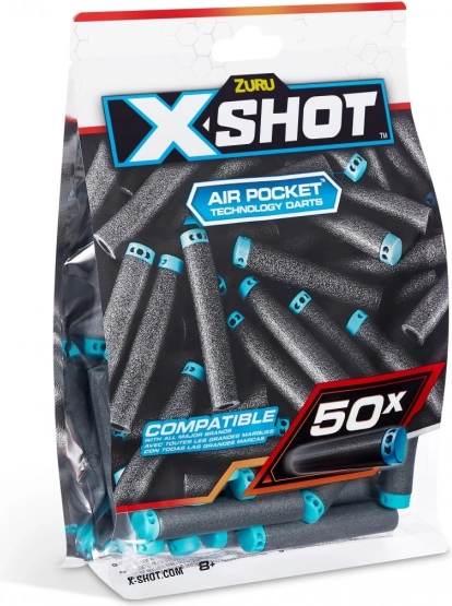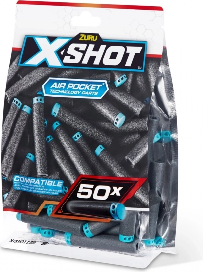 Med dette praktiske genopfyldningssæt med 50 pile går du aldrig glip af en chance! X-Shot-pile med Air Pocket-teknologi er designet til længere, hurtigere og mere præcis skydning. X-Shot-pile er kompatible med de fleste førende mærker og leverer den bedste ydeevne takket være den fantastiske letvægtsskumteknologi! Leveres med et lukbart etui for nem opbevaring efter kampen.