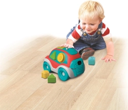 Denne interaktive 3-i-1-sorter kombinerer bevægelse, logik og tidlig læring. Børn tilegner sig legende genkendelse af former og farver, træner øje–hånd-koordination og bliver fortrolige med alfabetet. Efter legen åbnes blot bilens bagdel, så alle klodser igen er klar til ny sortering.