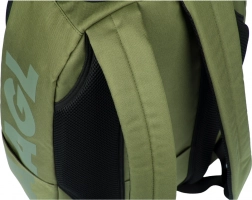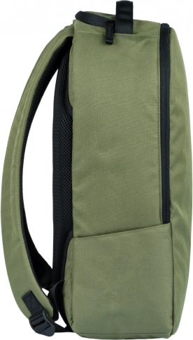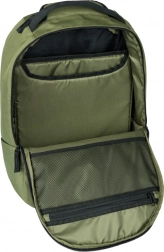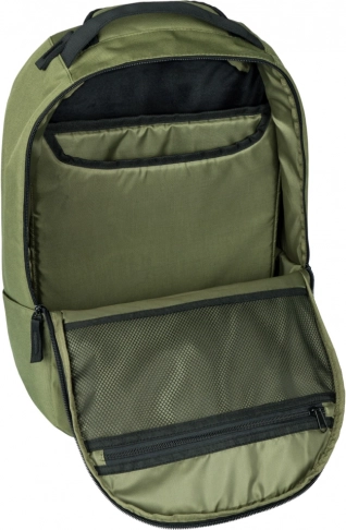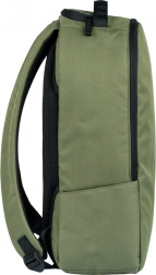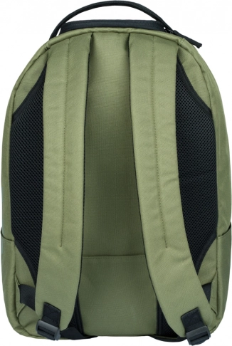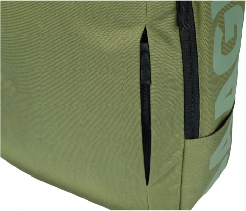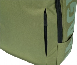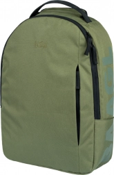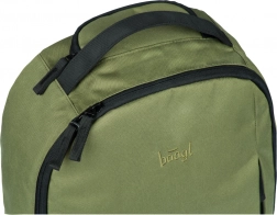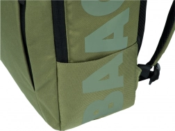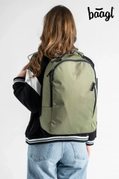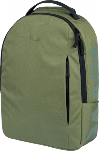 Stilfuld byrygsæk BAAGL eARTh i khaki er lavet af 100% genanvendt, vandafvisende materiale. Den tilbyder ergonomisk formet ryg, justerbare skulderstropper, polstret lomme til 15"-laptop samt praktiske for- og toplommer med lynlås. Med lav vægt på 500 g, volumen på 18 l og bæreevne op til 7 kg er den ideel til skole, by og arbejde.