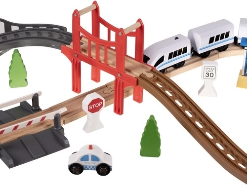 Denne træ legetøjstogbane er den ideelle løsning til at støtte kreativitet og fantasi hos børn. Den er designet til, at børn kan fordybe sig i en verden af jernbaneunderholdning, både i hjemmet eller udenfor. Sættet indeholder i alt 37 præcist forarbejdede elementer, inklusive bro og bygninger, der tilføjer realistiske elementer til sjov.