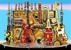 Byg efter det farverige motiv af musikbyen, eller tag udfordringen op og læg kun efter formerne på bagsiden.