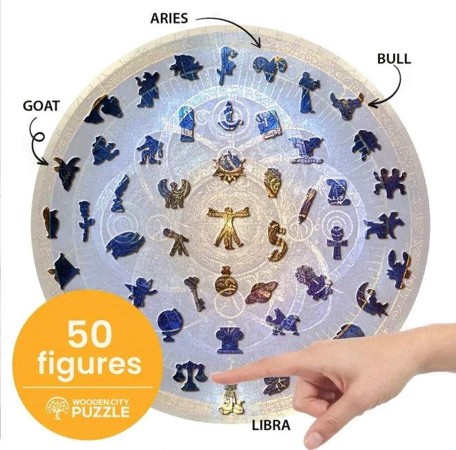 Oplev magien ved at lægge WOODEN CITY træpuslespil – smukt forarbejdede, laserudskårne brikker med motiv af den blå stjernetegnscirkel. Puslespillet byder på unikt formede brikker i dyreformer, højere sværhedsgrad og glatte kanter uden splinter. Fremstillet af robust HDF-plade og 100% uden plastemballage.