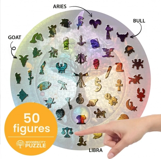 Puslespillet er fremstillet af solid HDF-plade med en tykkelse på 3–4 mm, så det tåler hyppig samling og håndtering. Takket være den præcise laserskæring er kanterne glatte og sikre. I pakken finder du også en separat skabelon, der hjælper med at løse de mere komplekse dele af motivet.