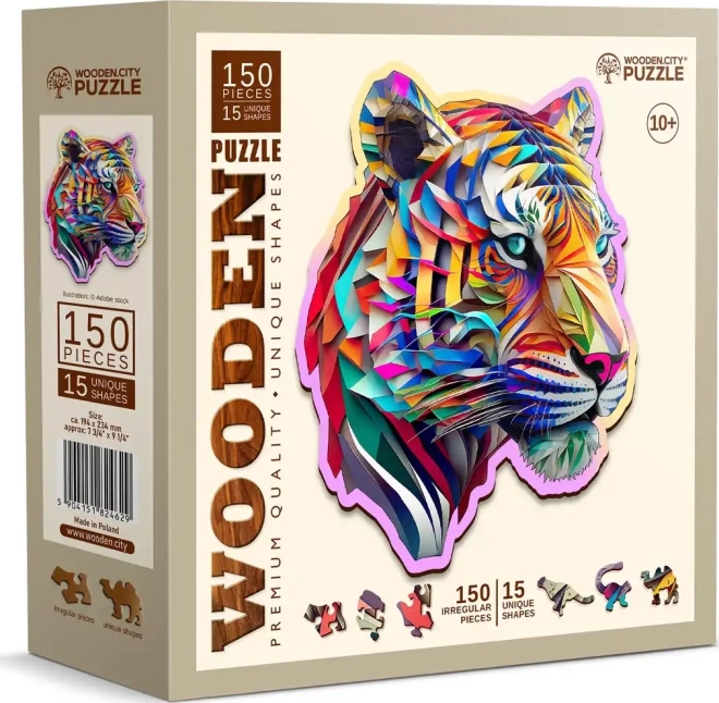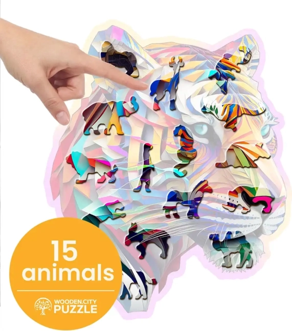 Nyd at samle et originalt træpuslespil med motiv af en farverig tiger fra WOODEN CITY. Takket være de unikt formede brikker inklusiv dyresilhuetter og præcis laserbearbejdning byder dette puslespil på højere sværhedsgrad og en fantastisk oplevelse. Puslespillet er eco‑friendly, uden plastemballage, og er en fremragende gave til enhver lejlighed.