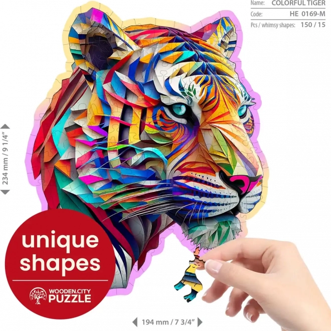 Oplev magien ved træpuslespil med modellen Farverig tiger, som begejstrer med sit livlige design og høje kvalitet. Laserudskårne brikker i HDF-plade har glatte kanter uden splinter, og en del af dem er formet som dyresilhuetter med smukt fremhævede detaljer. De mange forskellige brikkeformer gør samlingen mere udfordrende og sjovere end klassiske puslespil.