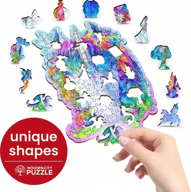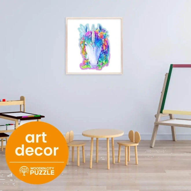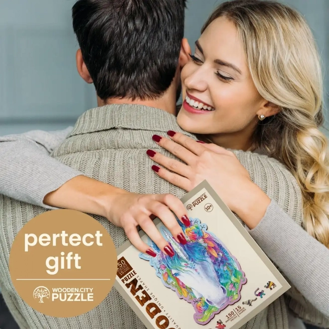 Det stilfulde træpuslespil med enhjørningmotiv fra WOODEN CITY giver en fantastisk oplevelse for fans af originale puslespil. De laserskårne brikker med fremhævede detaljer er behagelige at samle, og nogle af dem har dyreformer, som også kan stilles op separat som små figurer.