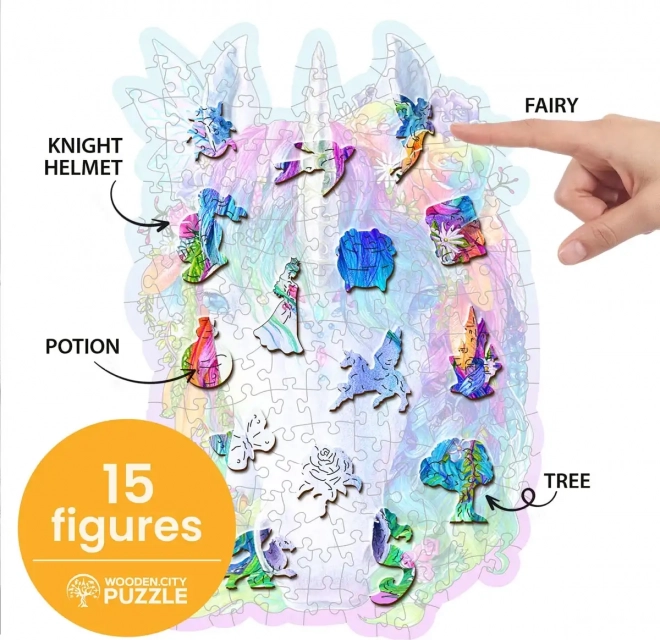 Oplev både sjov og udfordring med WOODEN CITYs træpuslespil – en stilfuld enhjørning med 150 brikker. Brikkerne er præcist laserskåret, nogle i form af dyr og med fremhævede detaljer. Puslespillet har højere sværhedsgrad takket være unikt formede brikker, glatte kanter uden splinter og er 100% EKO uden plastemballage.