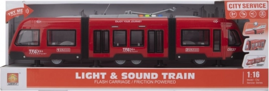 Realistisk køreoplevelse uden batterier med denne sporvogn i skala 1:16. Ved hjælp af svinghjulet kan den køre fremad efter en let skub og fortsætter med at køre selv når den slippes.< /div>