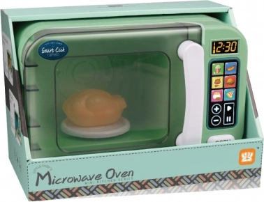 Grøn mikrobølgeovn er udstyret med lyd- og lyseffekter, hvilket giver en realistisk oplevelse ved madlavning. Batterier er inkluderet i pakken.