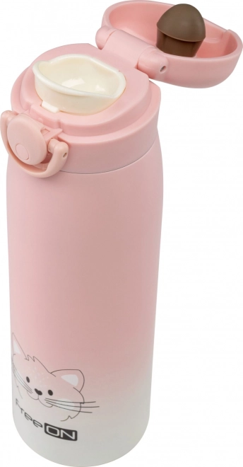 Let og bærbar termoflaske med kattemotiv, ideel til daglig brug.