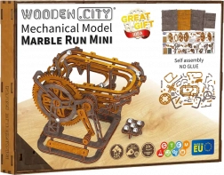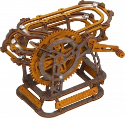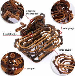 Nyd en fascinerende oplevelse med denne træ 3D kuglebane fra Wooden City. Lavet af højkvalitets birkekrydsfiner, tilbyder det detaljeret udførelse og en funktionel mekanisk model af kugler, der løber gennem en labyrint drevet af en håndmekanisme.