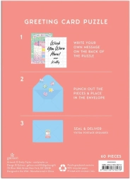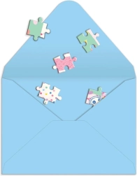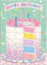 Overrask dine kære med en kombination af kort og puslespil. Dette postkort i puslespilsformat viser en smuk kage, på bagsiden kan du skrive en personlig besked, dele den i stykker, lægge dem i den vedlagte kuvert og sende som gave.