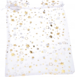 Elegant organzapose med stjernemotiv, ideel til juledekorationer og stilfuld gaveindpakning. Fås i to farvevarianter – guld og sølv.