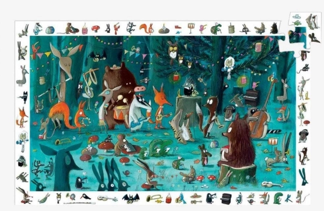 Dyk ned i musikkens verden med DJECO Skovorkester. Børn lærer på en legende måde om forskellige musikinstrumenter og udvikler samtidig finmotorik, logisk tænkning og tålmodighed. Når puslespillet er samlet, kan de i billedrammen finde enkelte motiver og lede efter dem i hovedillustrationen, hvilket styrker iagttagelsesevnen.