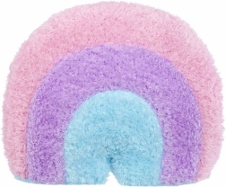 Bamse i form af regnbue i lyserød, lilla og blå med et venligt smil. Ideel til dekoration eller som krammeven til børn.