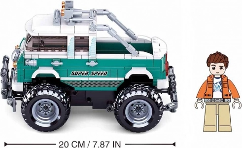 Modellen er designet til legende byggeri og dynamisk kørsel. Den har åben ladflade til last, taglys og sikkerhedsbøjle foran. Figurer (1 stk.) har realistisk form og bevægelige led – hoved og håndled kan drejes, i taljen roterer figuren 360°, og benene bevæger sig i gangretningen.