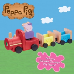 Trætoget Peppa Pig med bedstefar Gris er det ideelle legetøj for små fans af denne populære tegneserie. Sættet indeholder en rød lokomotiv og to farverige vogne, der nemt kan kobles sammen med magneter. Desuden indeholder pakken en træfigur af bedstefar Gris, hvilket giver børn mulighed for at udvide deres leg med flere karakterer og historier.