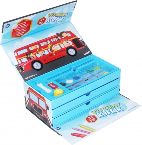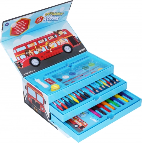Kunstnerkuffert til børn med busmotiv, 31 dele