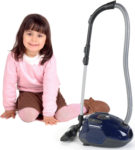 Realistisk legetøjsstøvsuger fra ELECTROLUX i elegant blå farve, som giver børn fra 3 år masser af sjov, når de efterligner rengøring. Den tilbyder ægte sugefunktion til lette perler, autentiske lydeffekter, praktiske hjul, bærehåndtag og “effekt”-indstilling med drejeknap – alt sikkert tilpasset børnehænder.