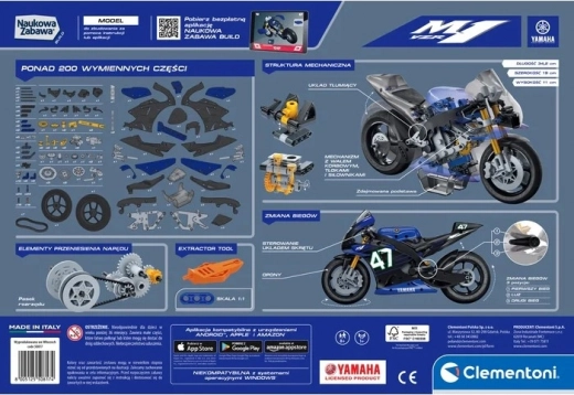 Udforsk teknologiens verden med byggesættet Laboratorio di Meccanica – Yamaha M1. Denne detaljerede model af en MotoGP-racermotorcykel forener sjov og læring: forstå, hvordan gearkasse, affjedring og kraftoverførsel med kæde fungerer. Delene er designet til en solid konstruktion og et autentisk udseende.