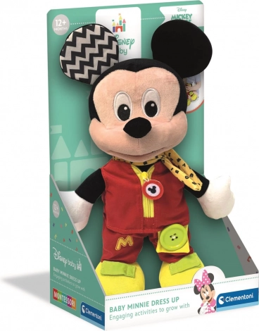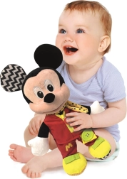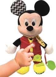 Denne ultrabløde bamse i skikkelse af den elskede figur MICKEY er designet til at motivere børn til naturlig læring gennem leg. Forskellige teksturer og materialer stimulerer følesansen, mens enkle handlinger som at lyne lynlåsen eller lukke en knap udvikler hånd-øje-koordination og tålmodighed.