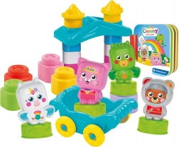 - Karet, 12 bløde Clemmy-klodser, 2 små tårne, tag, 4 klodser med dyrefigurer, illustreret papbog