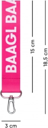 BAAGL nøglering i pink farve tilbyder den perfekte kombination af stil og funktionalitet. Fremstillet af 100% polyester, denne holdbare nøglering er designet til langvarig brug. Med en længde på 15 cm og en bredde på 3 cm giver den rigelig plads til bekvemt greb.